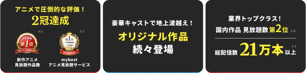 - グラビア作品以外にも人気の映画やドラマ、アニメや2.5次元舞台など【総配信数21万本以上】の充実コンテンツがラインナップ(国内作品の見放題第2位)