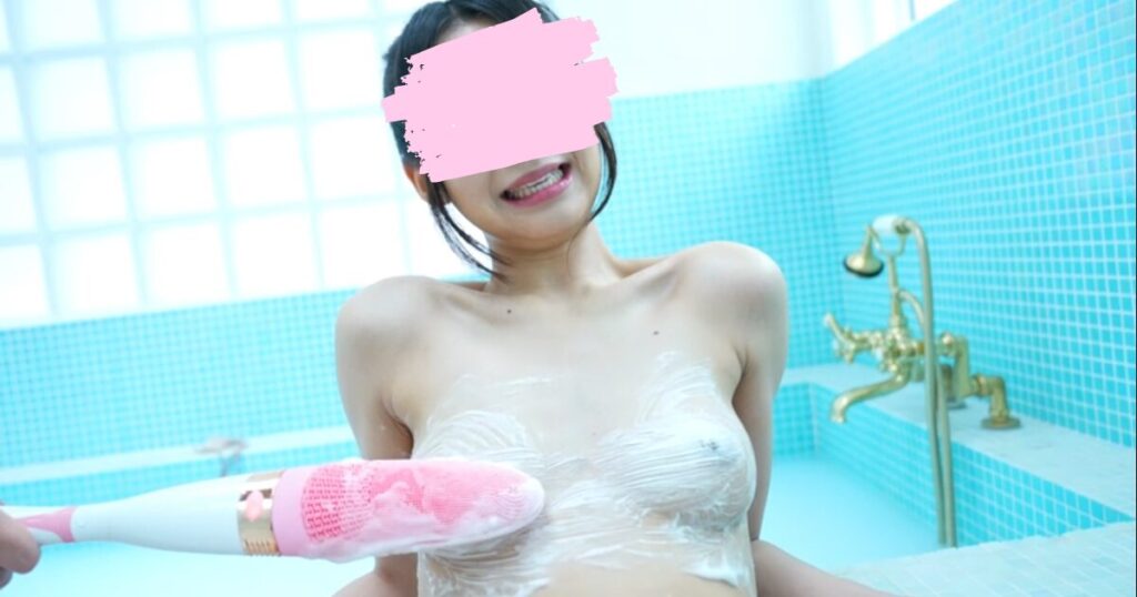 電動ブラシのバイブ振動でおっぱい洗い&パンツ越しの敏感ワレメ洗い(手マンみたいにゴシゴシお股を擦っててめっちゃエロい)で綺麗なお顔をアヘ顔に歪ませて快感に耐える表情がたまらない…!