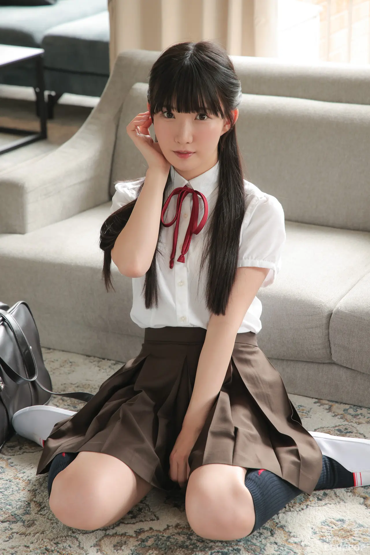 ( 五百木いお 制服シャツ ) 月額見放題コンテンツです。半袖シャツ×ブラウンのプリーツスカートの制服衣装の五百木いおちゃん、清楚えっちなパンチラショットを連発!白の花柄おパンツをたっぷり見せてくれてます。