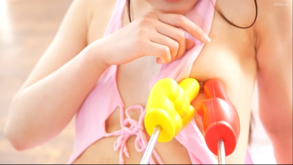 アイドルになるための特訓で疲れた西本風香ちゃんのカラダをマッサージしてあげると、思わず気持ちよくなっちゃって敏感反応で絶頂イキしてしまう極小ビキニのエロマッサージシーン。