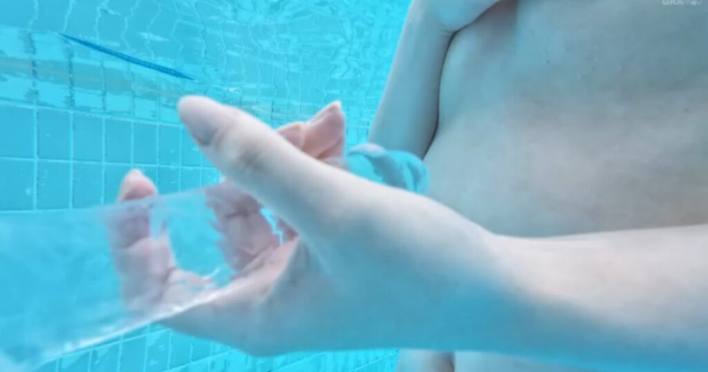 美しい白肌スレンダーボディでたっぷり魅せた後は、水中で透明ディルド手コキ→プールの中で疑似セックスしちゃう櫻井小春ちゃん。